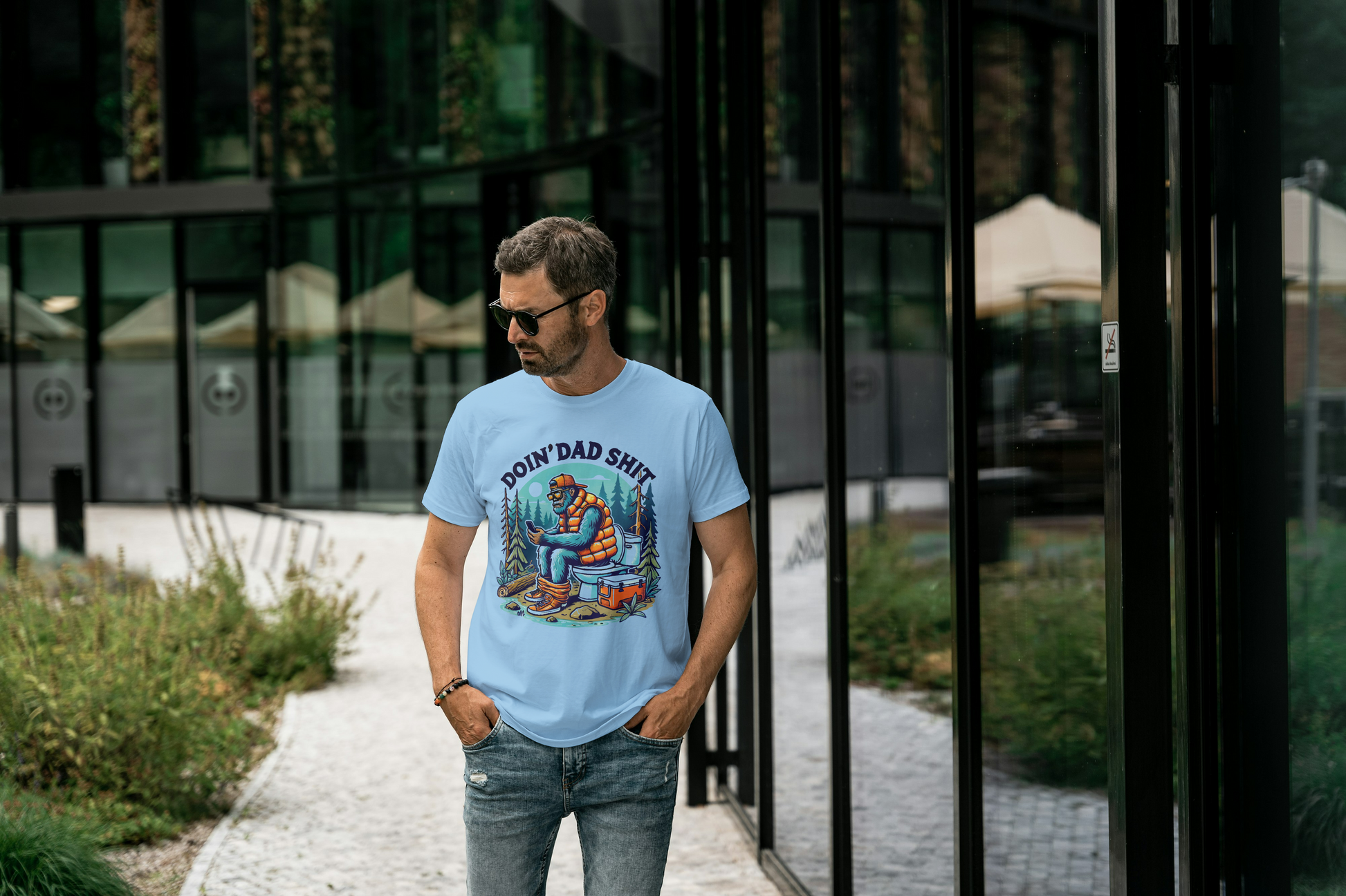 Embrace your inner wilderness dad with this hilarious cotton tee featuring a sasquatch doing what dads do best—taking a moment in nature. Soft, breathable fabric keeps you comfortable whether you're actually in the woods or just pretending to be. Perfect for fathers who appreciate quirky humor and don't take themselves too seriously. A conversation starter that celebrates the absurd side of fatherhood.